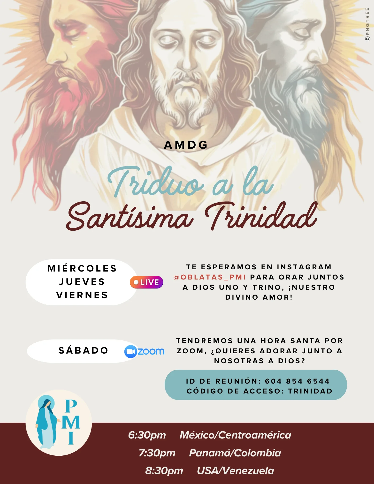 ¡Te esperamos para orar juntos en el Live de Instagram de @oblatas_pmi así como por ZOOM!