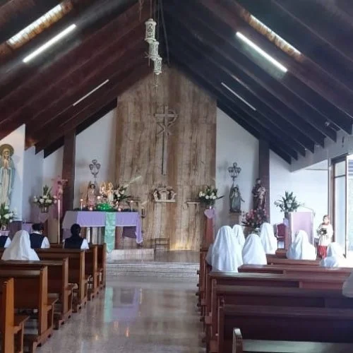 En la Capilla se celebra cada día, por la mañana, la Santa Misa y después continúa la Adoración hasta la tarde; el sábado se tiene también Adoración nocturna.